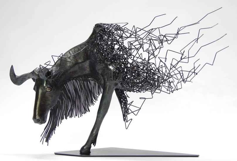 L'artiste japonais Tomohiro Inaba est un architecte du vide qui crée des sculptures semblant se désintégrer en plein vol ou s'assembler, les fils s'amincissant continuellement jusqu'à ne laisser que des espaces de vides...