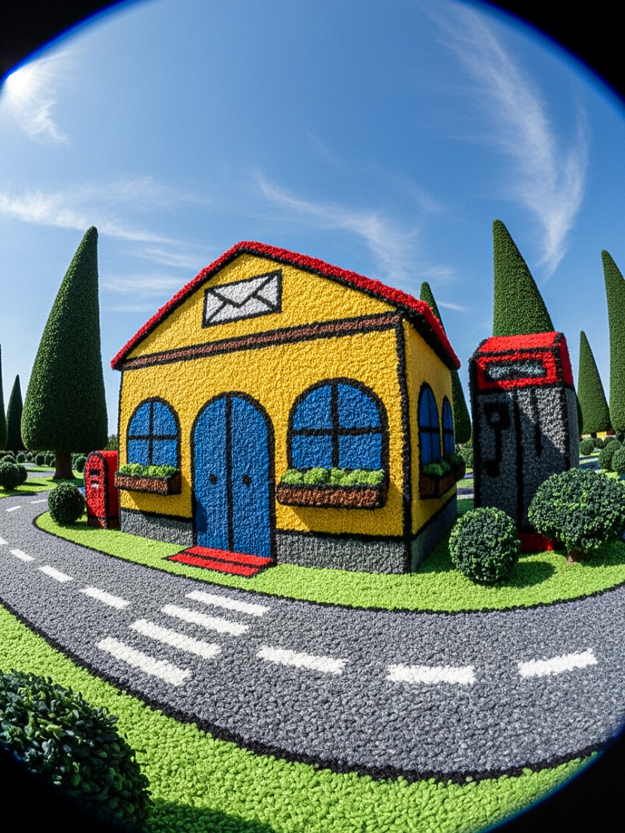 Une ville miniature hyper détaillée, aux textures presque palpables au perspective réaliste du style cadrage cinématographique et où chaque élément du tapis original est repensé avec soin.