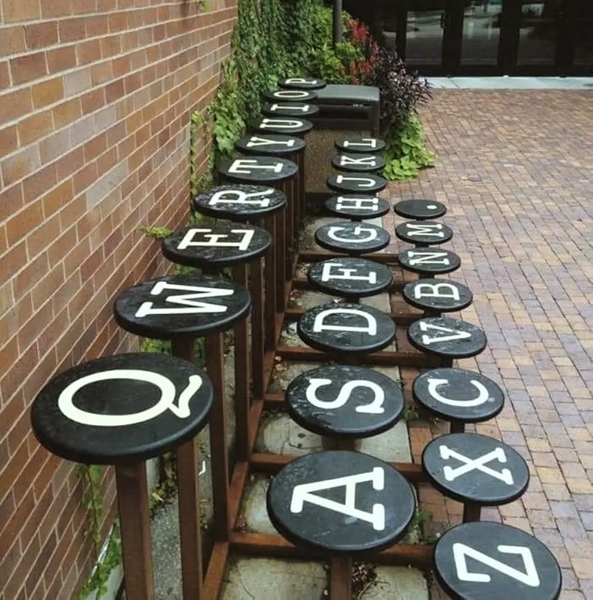 Des sièges clavier conçus comme des touches d'une machine à écrire à l'ancienne et à la disposition QWERTY.