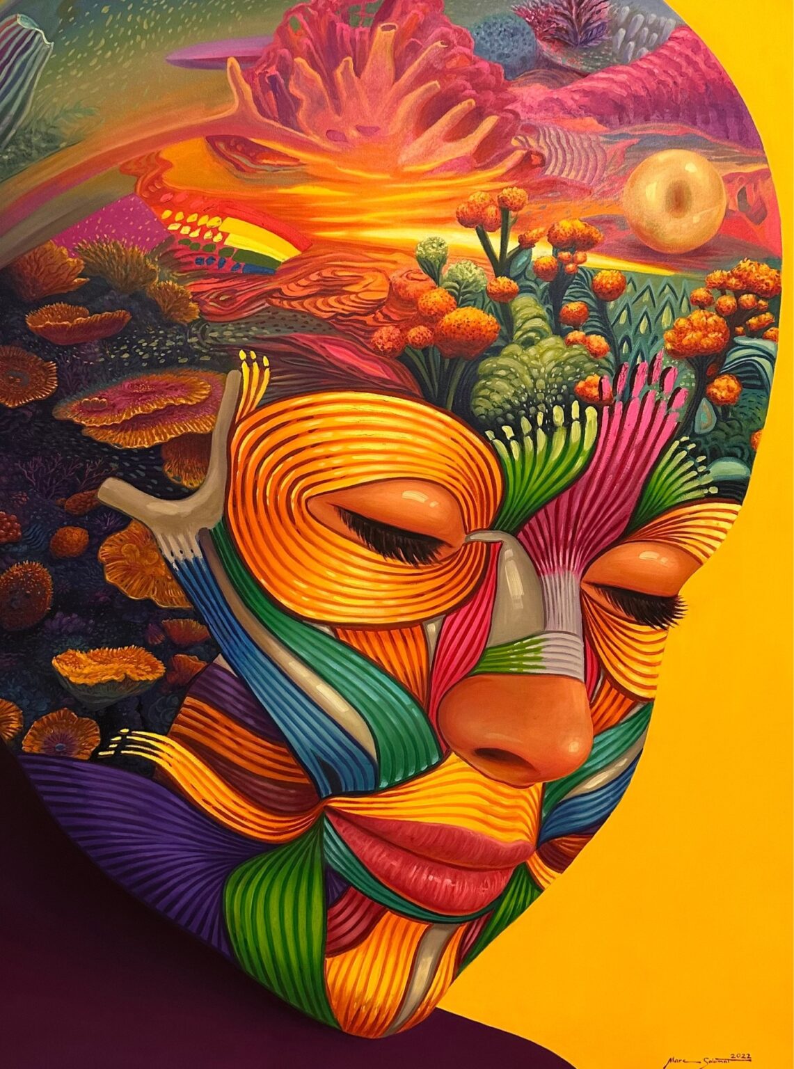 L'artiste numérique et visionnaire Philippin Marc Salamat, spécialisée en publicité, de l'Université d'État de Bulacan, crée de grandes peintures à l'huile psychédéliques qui explorent des thèmes comme la spiritualité, l'éveil et l'amour divin de la vie...