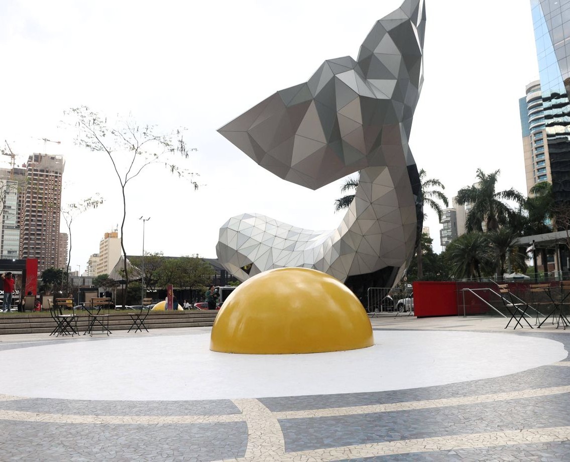 En 2023 dans les rues de Sao Paulo (Brésil) les œufs au plat géants ont envahis aussi le bitume de la ville, offrant ainsi un spectacle étonnant et amusant d'installation artistique 3D, intitulée Eggcident. Une création faisant partie d’un festival organisé au Brésil afin de parler de climat et promouvoir le développement durable.