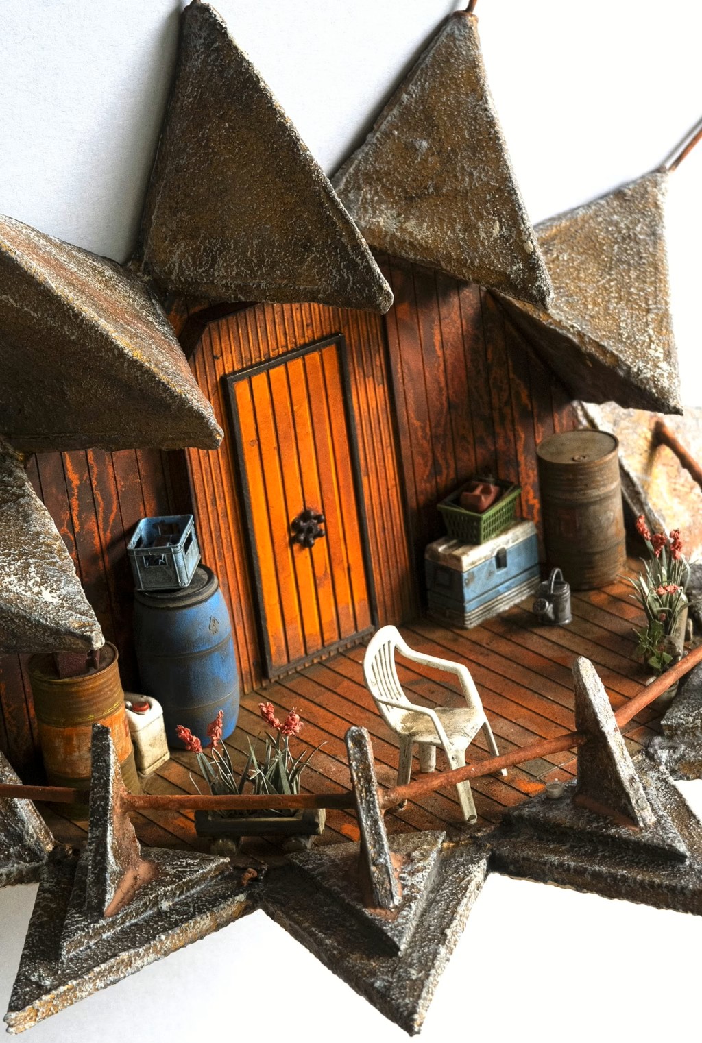 Ses créations étranges post-apocalyptiques qui vont de Fleur d'IPN, Jour de fête, La Beauté Des Aurores, Rêve de Cime... et où la fragilité devient force, le déchet devient abri et le minuscule ouvre sur l’infini. Des oeuvres érigeant la beauté comme un ultime refuge face au chaos.