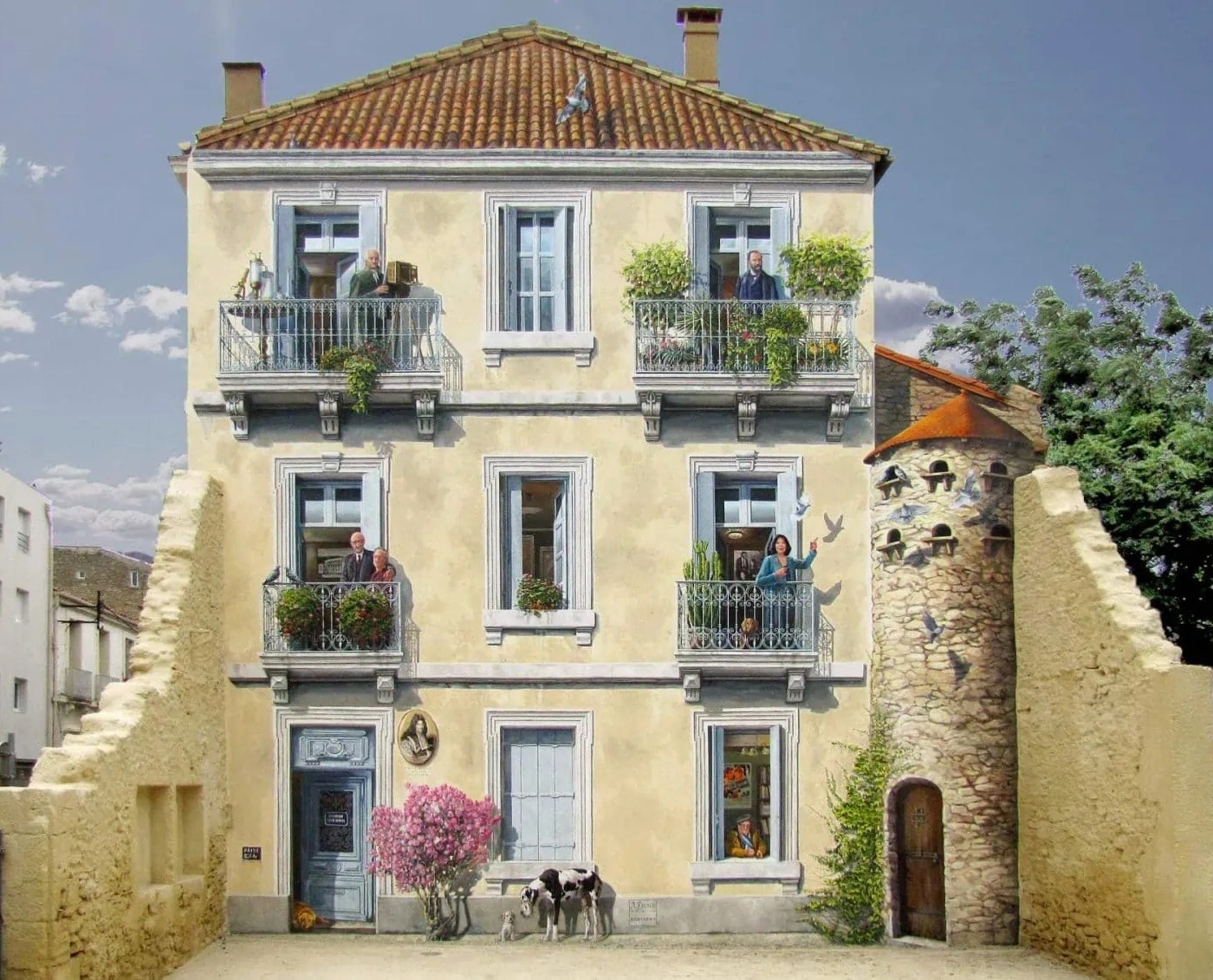 L'artiste français auteur compositeur Patrick Commecy est aussi fresquiste et directeur artistique de A-Fresco, dont les réalisations de fresques urbaines monumentales hyperréalistes et en trompe-l'œil sont vraiment superbes ...