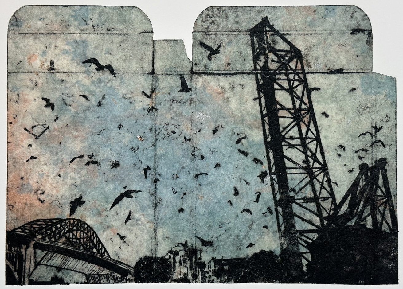 L'artiste graveuse Rachel Mentzer, basée dans l'Ohio, est connue ses créations de collagraphies faites à partir de matériaux recyclés, inspirée par l'interaction entre l'urbain et le naturel...
