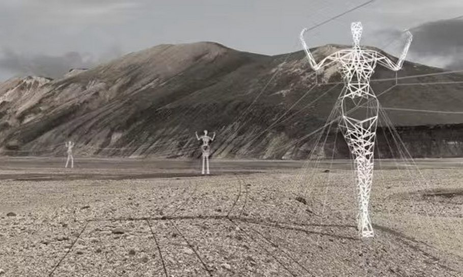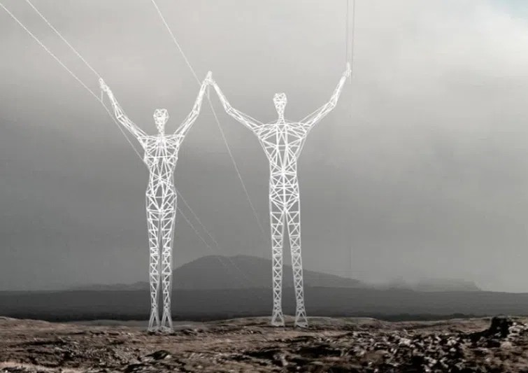 Dans d'autres projets comme en Islande, le cabinet d'architecte américain Choi+Shine a développé le projet appelé Land of Giants, Pays des géants où les pylones sont en forme de géants humanoïdes .