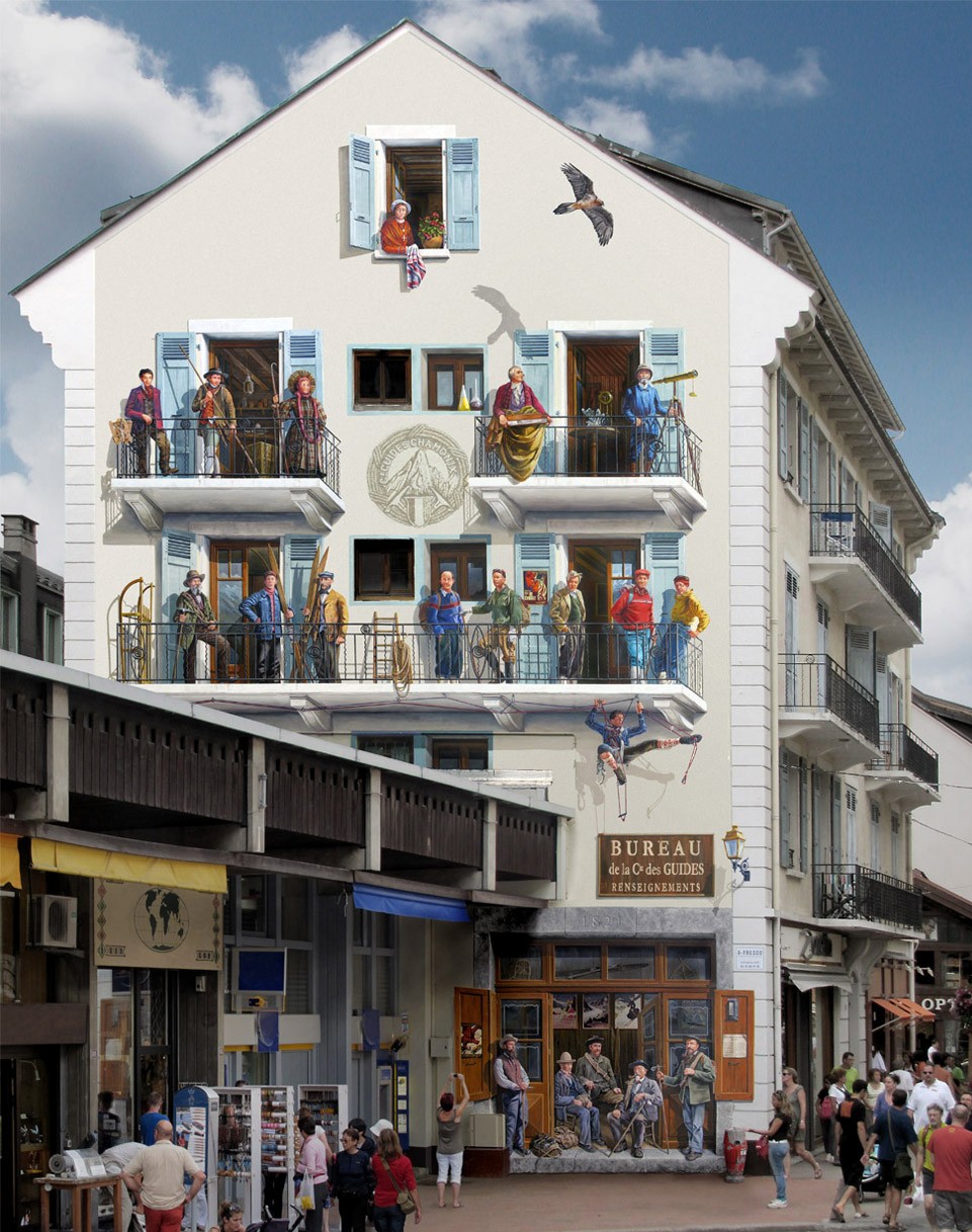 L'artiste français auteur compositeur Patrick Commecy est aussi fresquiste et directeur artistique de A-Fresco, dont les réalisations de fresques urbaines monumentales hyperréalistes et en trompe-l'œil sont vraiment superbes ...