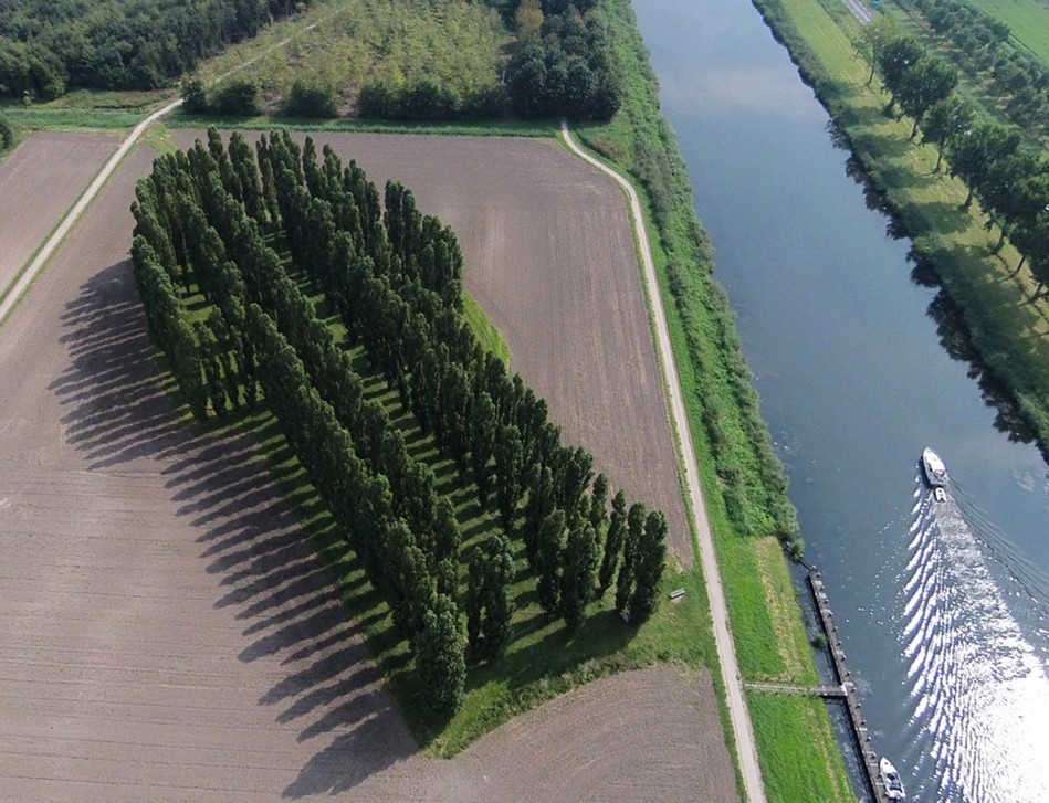 Cette plus anciennes œuvres paysagères de Flevoland n'a bien sûr pas de toit, pas de vitraux, ni de murs et la pluie tombe sans entrave sur le sol et où le vent soufflant à travers les colonnes d'arbres fait bruisser les feuilles. Le regard est continuellement tiré de haut en bas et vers les arbres, ainsi que vers les cercles de coquillages autour des troncs, qui font références à la mer qui faisait rage ici.