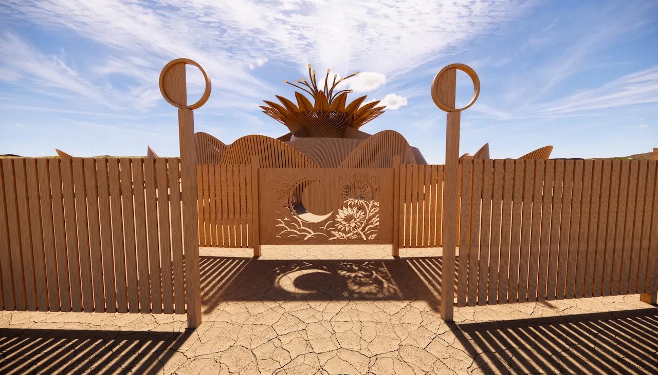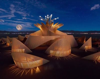 Une structure en bois tentaculaire surprenante de l'artiste américain James Gwertzman et son équipe de Moonlight Collective ainsi que de la designer d'architecture Annie Locke Scherer. Un temple basé sur une floraison éphémère de fleurs de cactus rares du désert, la Reine de la Nuit et qui ne fleurit qu’une fois par an.