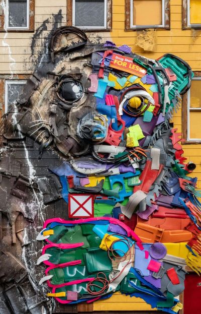 L'artiste de rue portugais Artur Bordalo connu sous le nom de Bordalo II, travaillant à Lisbonne, est un créateur de sculptures massives, principalement animales, à partir de divers déchets et objets jetés...