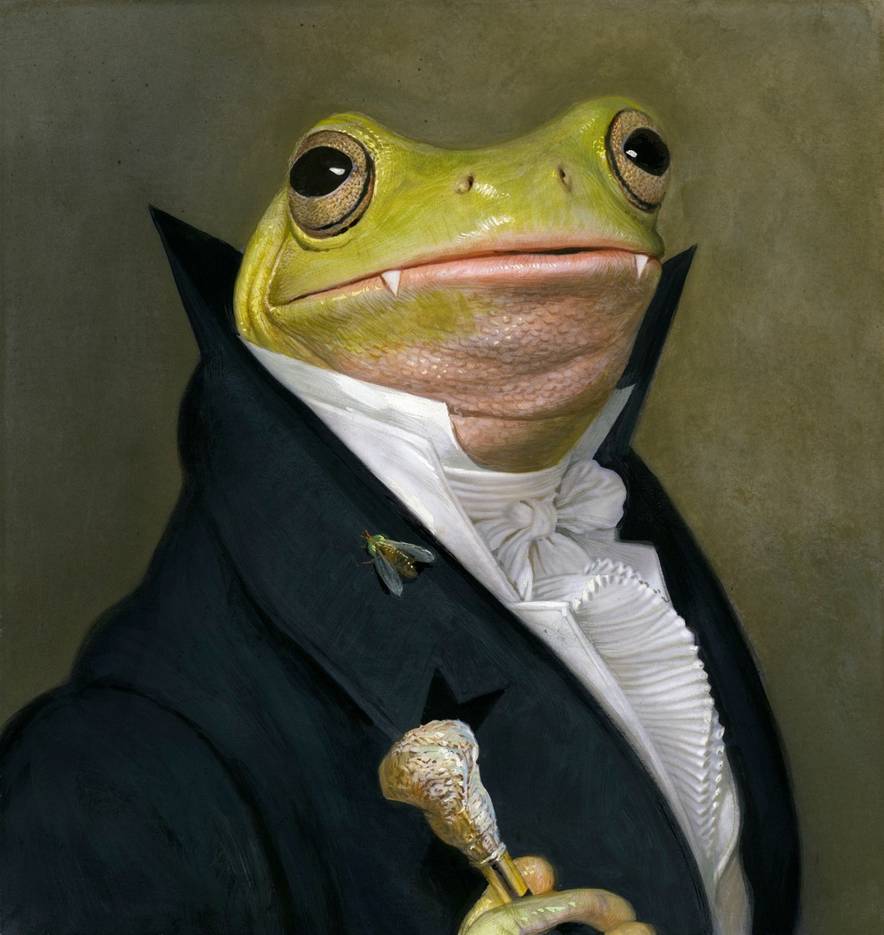Son style mélange réalisme et fantaisie, créant des mondes oniriques peuplés de créatures imaginaires et de personnages animaliers anthropomorphes. A la gouache luxuriante, le portrait classique se transforme en des rêves surréalistes.
