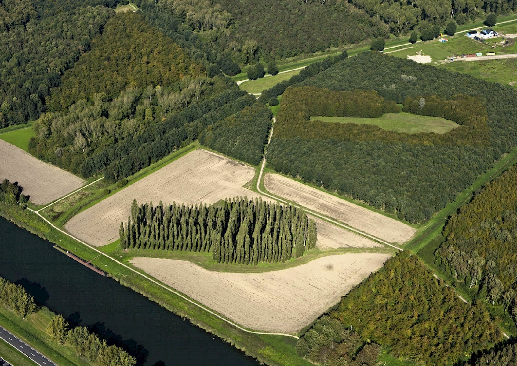 Mais voilà Boezem avait décidé qu'il fallait une contre-cathédrale, créée quelques années plus tard à proximité et qui est un espace vide en forme de cathédrale, creusé dans une forêt de chênes et de hêtres.